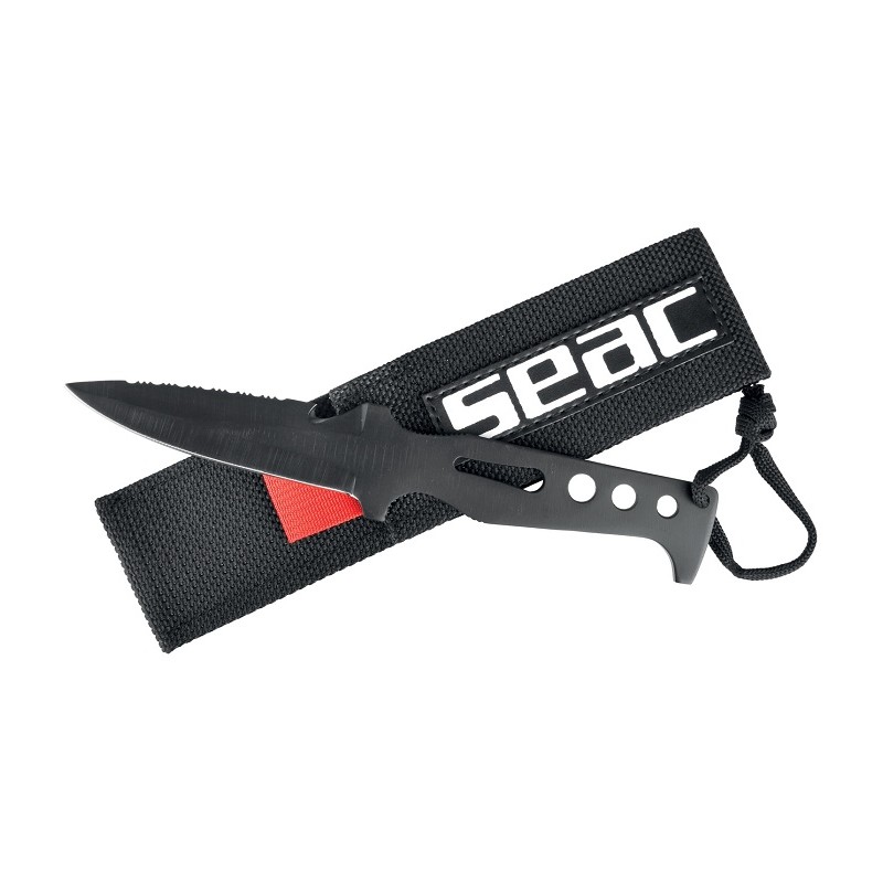 Coltello subacqueo monopezzo con teflonatura nera protettiva, lama acciaio inox